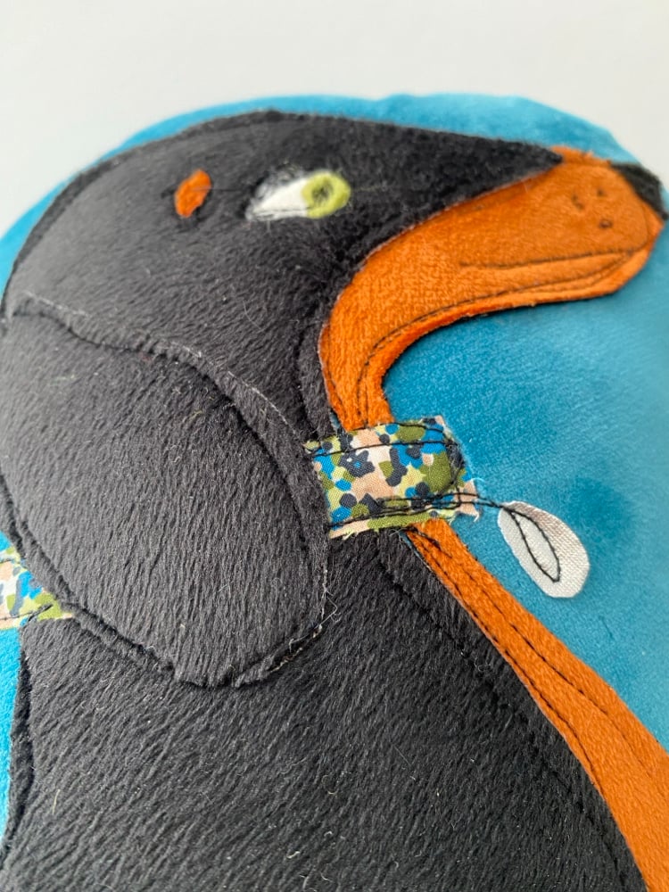 Gorgeous handmade fabric cushion with an appliqué fabric Dachshund decoration.
