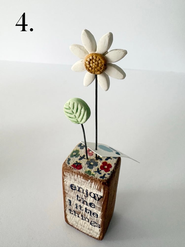Made from mixed media, this little wooden block measures approx. 12-15cm tall (including Daisy)