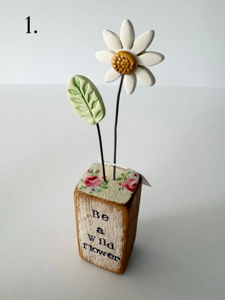 Thimbleville -’Single flower block' Wooden block with Daisy/flower